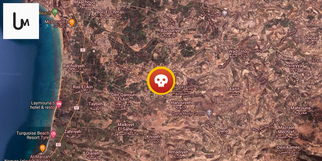 One person was injured when a car was targeted in Jiyeh. The raid targeted the car with two missiles near the Zaroot neighborhood mosque, between the towns of Jiyeh and Barja in the Iqlim al-Kharroub region