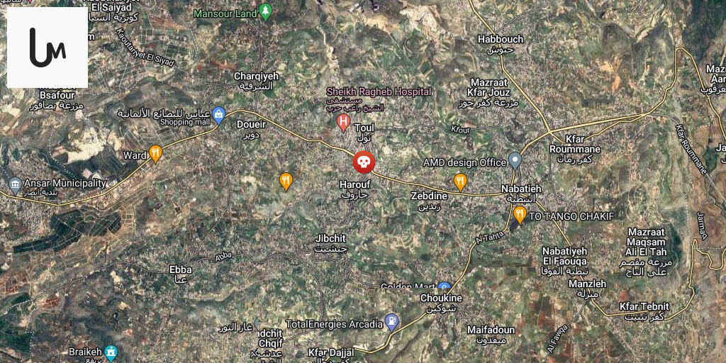 Ambulance teams headed to the scene in Ain Qana, behind Al Mahdi School: A drone strike targeted the town of Ain Qana in the Iqlim Al-Tuffah region.