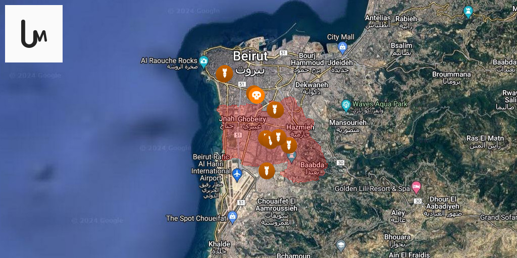 Areas targeted by recent Israeli airstrikes include: Al-Maamoura, Galerie Semaan, and Al-Mushrifiyah.