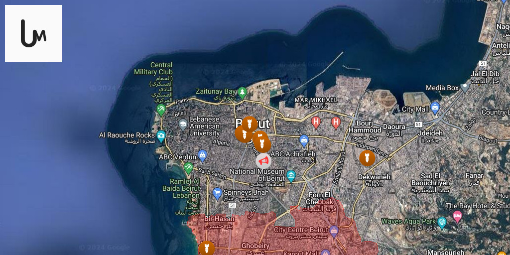 A drone strike targeted a building in the Bashoura area of Beirut.
