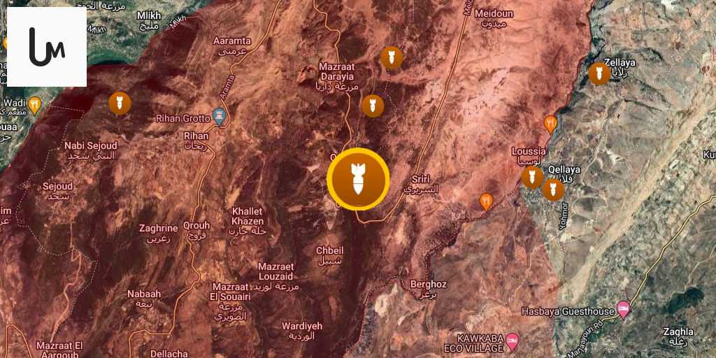 An airstrike targeted the outskirts of Qilya in the western Bekaa Valley.