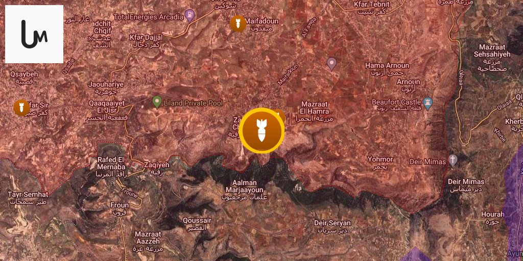 Artillery shelling targeted the outskirts of Jabal al-Batoum, Yater, Zibqin, Taybeh, Khiam and Kafrshouba, with an unexploded rocket reported in the Khashneh-Qana area.
