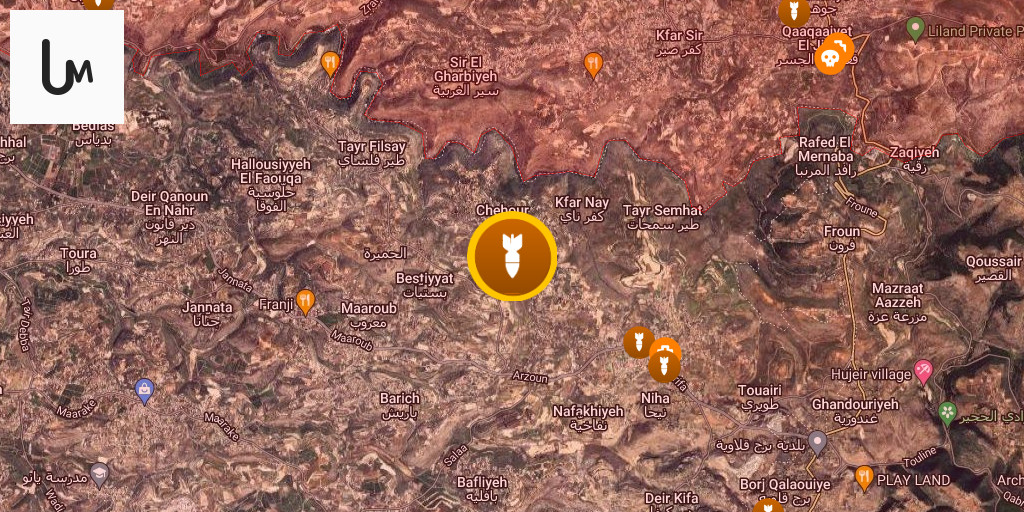 Artillery shelling targeted the outskirts of Jabal al-Batoum, Yater, Zibqin, Taybeh, Khiam and Kafrshouba, with an unexploded rocket reported in the Khashneh-Qana area.