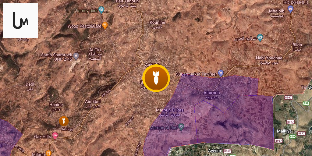 Artillery shelling targets Maroun al-Ras and the outskirts of Bint Jbeil, and two airstrikes hit Khiam.