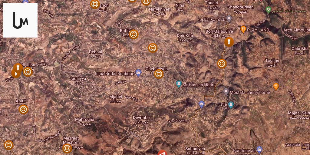 The air raids carried out by warplanes from dawn until 9:00 AM targeted: - Nabatieh - Adchit - Mefdoun - Harouf - Toul - Kfour - Deir Qanoun Ras - Hanieh - Barish - Siddiqin - Majadel - Mahrouna - Taybeh - Mansouri - Beit al-Sayyad - Jabal al-Batoum - Srifa -
