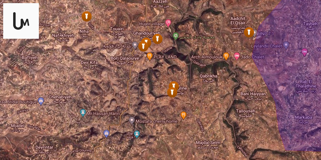 Airstrikes targeted the towns of Arnoun, Kafr Tebnit, Ghandouriyeh, Touline, Deir Mimas and Harouf