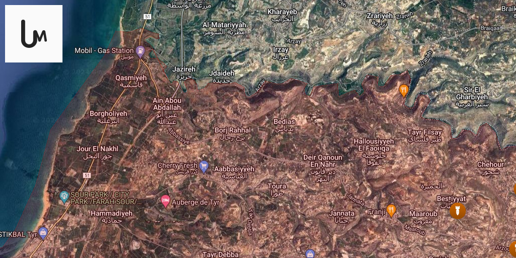 Israeli airstrikes targeted several southern towns, specifically the outskirts of Arzoun, Shahour, Al-Tayri, Al-Jamijmah, and Arnoun