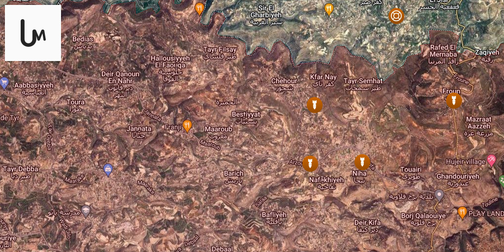 Israeli airstrikes targeted several southern towns, specifically the outskirts of Arzoun, Shahour, Al-Tayri, Al-Jamijmah, and Arnoun