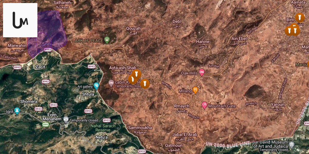 Airstrikes targeted Qouzah and Aita al-Shaab, coinciding with intermittent artillery shelling.