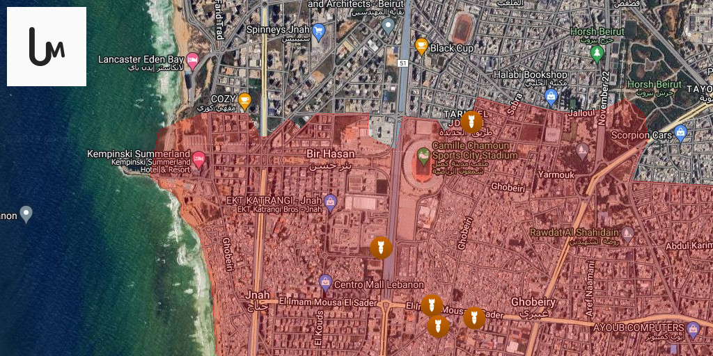 The series of Israeli raids on Beirut and its surroundings targeted: Bir Hassan, Al-Rahab, Hayy al-Salloum, Al-Manara, Ain al-Mreisseh, Corniche al-Mazraa, Musaytibeh, Al-Basta, Choueifat, Aramoun, Al-Bayader, Kafrhoun, Ain al-Tineh, Bshamoun, and Al Mdars