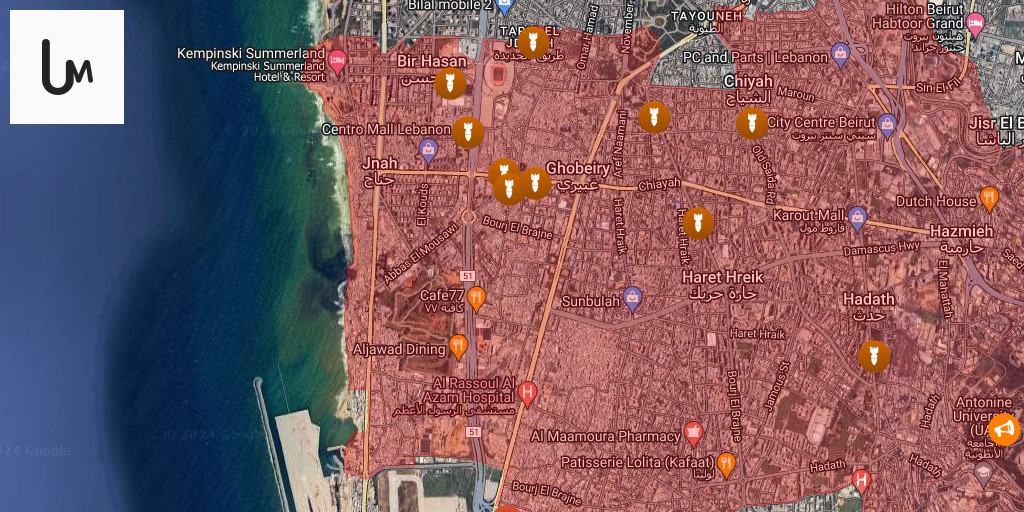 The series of Israeli raids on Beirut and its surroundings targeted: Bir Hassan, Al-Rahab, Hayy al-Salloum, Al-Manara, Ain al-Mreisseh, Corniche al-Mazraa, Musaytibeh, Al-Basta, Choueifat, Aramoun, Al-Bayader, Kafrhoun, Ain al-Tineh, Bshamoun, and Al Mdars